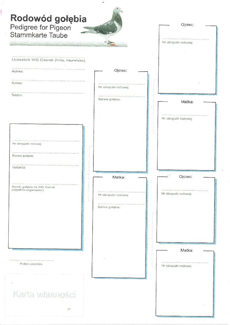 Proszę przesyłać dokumentacje (rodowody, karty własności) na gołębie, które wróciły z Finału jak również na te, które są odbite na czerwono tzw. "doloty" z innych lotów.